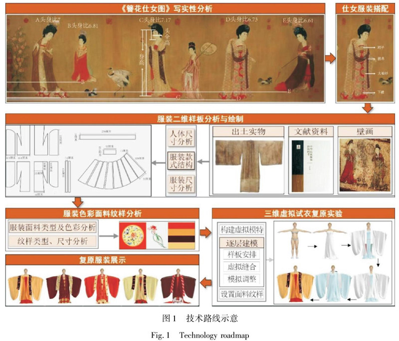 摘要: 《簪花仕女图》是周昉绘制的仕女画,对研究唐代服饰有重要的参考价值。然而,目前学者们对《簪花仕女图》的研究集中在服饰文化、历史学、服装美学等角度。本文从服装工程的角度,对仕女服饰的款式、尺寸、结构等进行研究。基于虚拟试衣技术,对仕女的服饰进行2D结构复原和3D建模,探索一种中国古服饰复原与展示新手法。(剩余15871字)