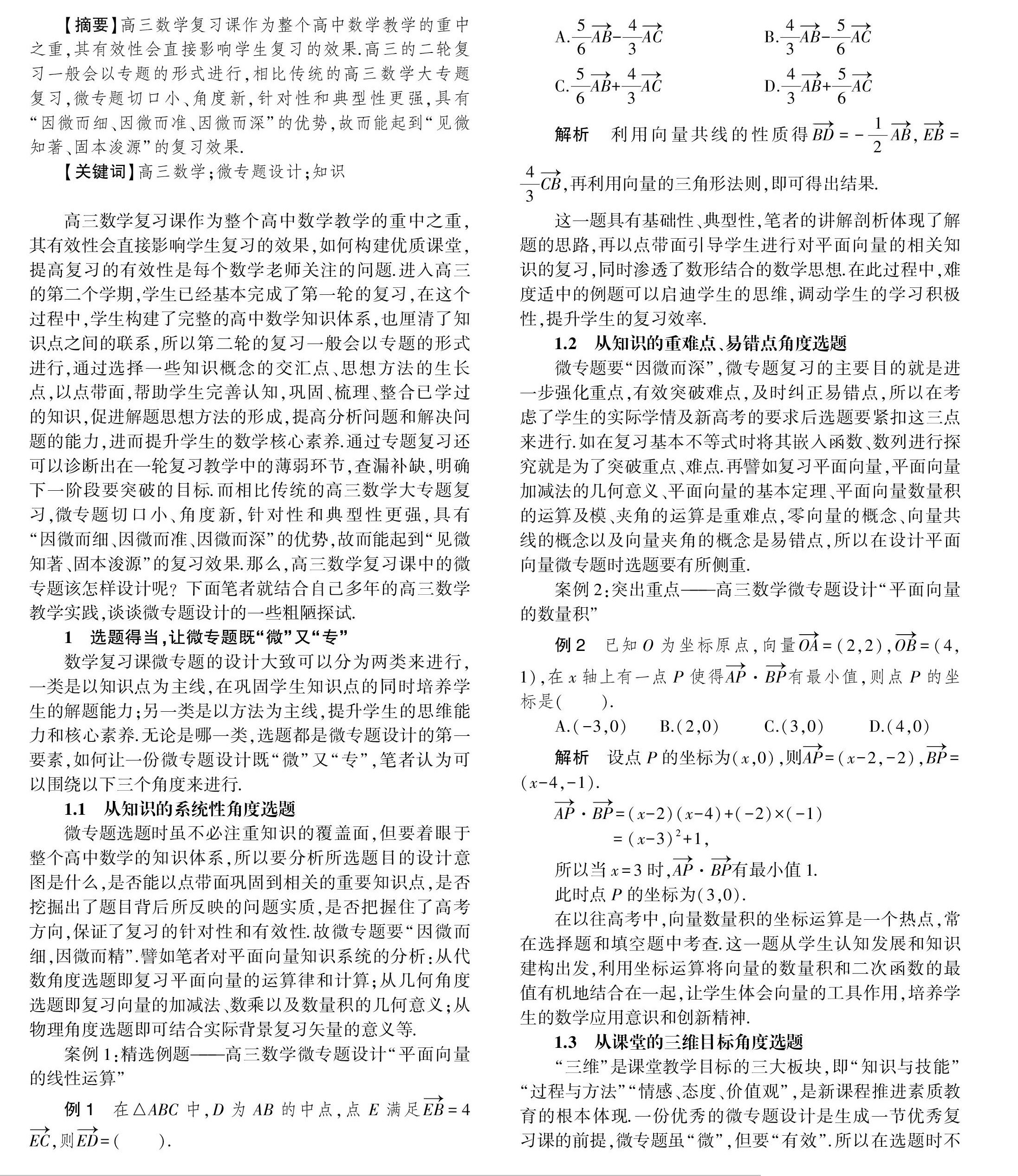 高三数学复习课中微专题设计的策略探究