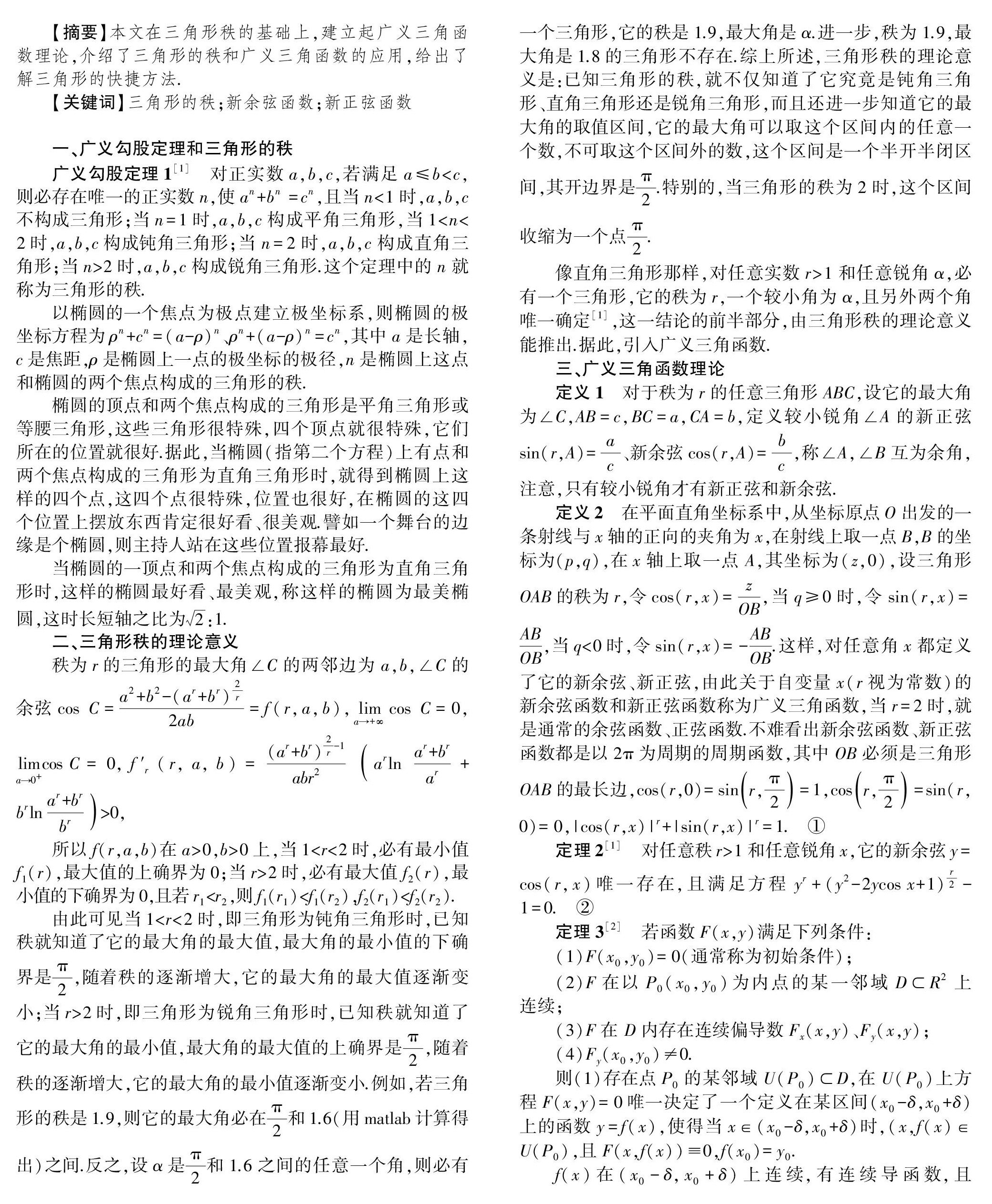 【关键词】三角形的秩;新余弦函数;新正弦函数