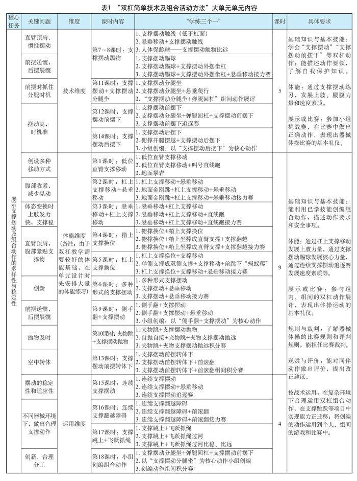 水平三“双杠简单技术及组合活动方法”大单元构建及实施策略