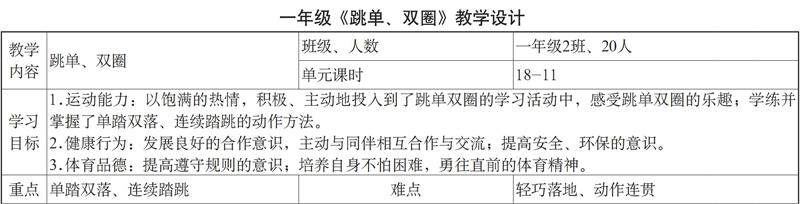 一年级《跳单、双圈》教学设计