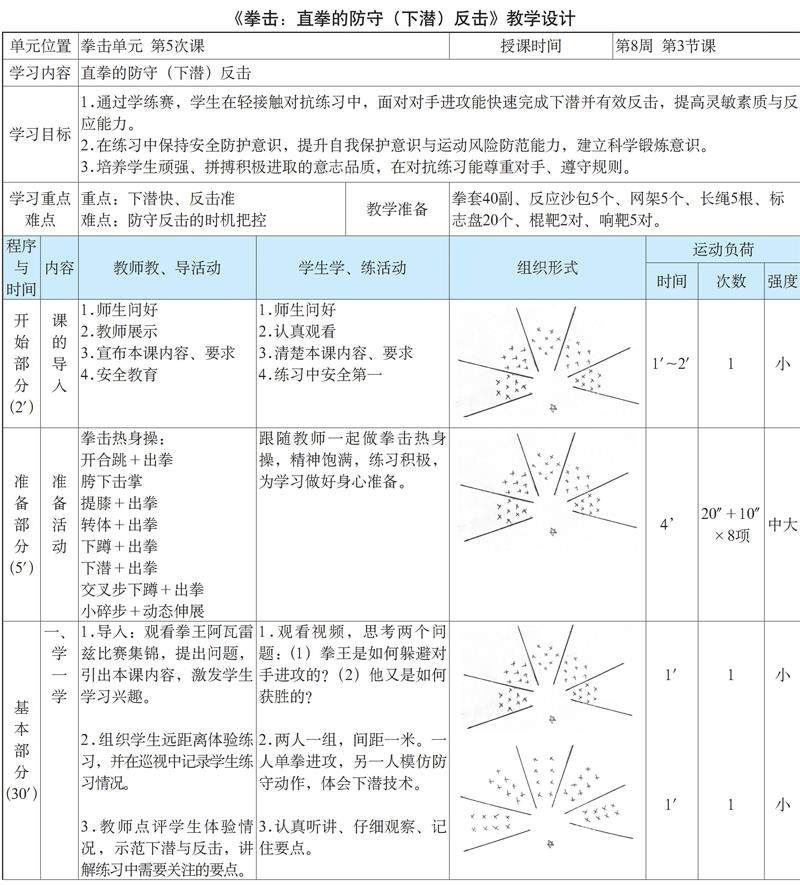 关键词:拳击:直拳的防守;下潜反击;教学设计
