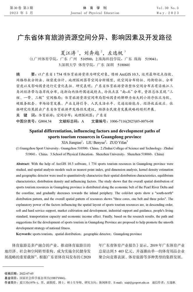 广东省体育旅游资源空间分异、影响因素及开发路径