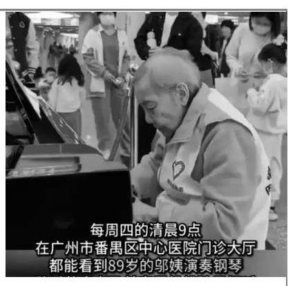 一位白发苍苍的奶奶,端坐在广州市番禺区中心医院门诊大厅的钢琴前,用历经岁月的双手,在琴键上演奏出悠扬悦耳的琴声。这位奶奶名叫邬姨,今年已经89岁。邬姨奶奶年轻时是一位艺术生,在一次就诊时,了解到医院正在招募钢琴弹奏志愿者,毅然报名加入,开始了每周的钢琴弹奏志愿者服务,如今已有3个多月,从不缺席。 (剩余15字)