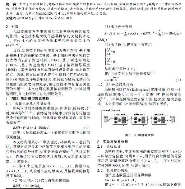 基于BP神经网络与数据拟合的接收信号强度测距算法比较研究及算法实现