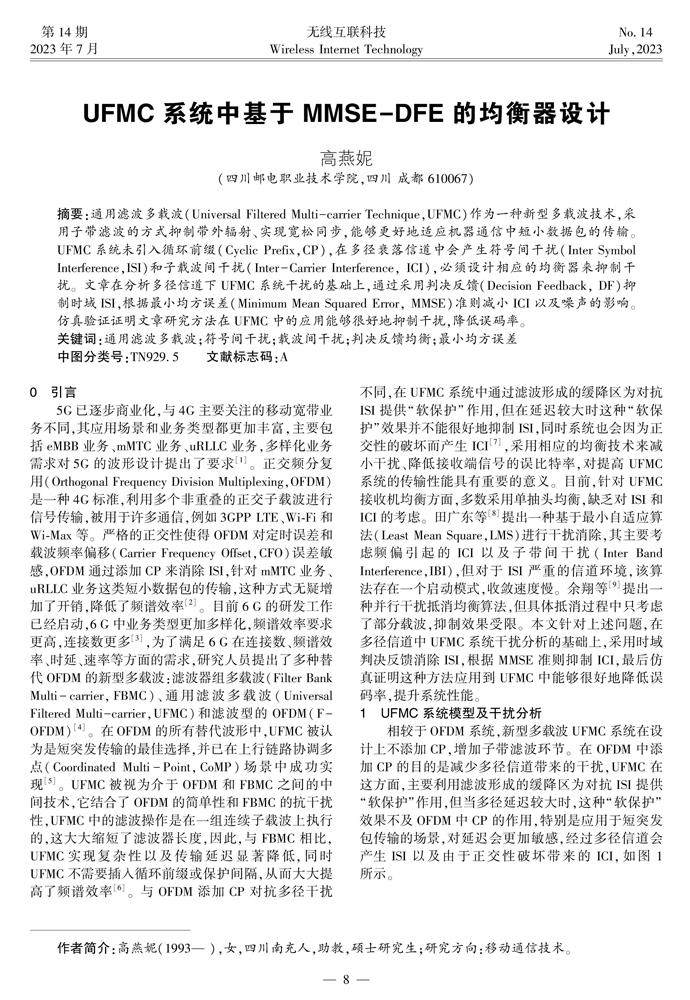 UFMC系统中基于MMSE-DFE的均衡器设计