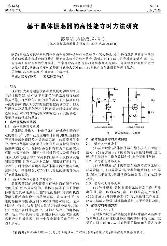 摘要:高精度的授时系统因恒温晶振的实际值和标称值存在一定的偏差,基于高精度恒温晶体振荡器对存储的脉冲数进行均值计算,模拟出高精度的脉冲信号,能够达到1 h以内的守时误差低于250 ns,能够满足授时系统的守时要求。文章针对晶体振荡器的老化参数进行拟合,通过模型对晶振守时方法进行实验,确保晶振守时能够保持在每天500 ns,以此来提升晶体振荡器的保持能力。(剩余3303字)