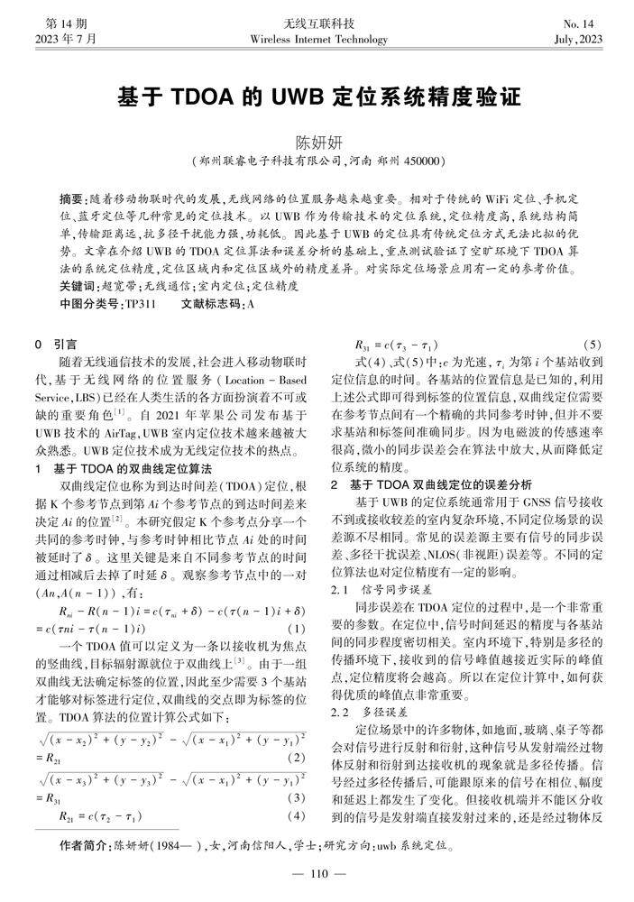 摘要:随着移动物联时代的发展,无线网络的位置服务越来越重要。相对于传统的WiFi定位、手机定位、蓝牙定位等几种常见的定位技术。以UWB作为传输技术的定位系统,定位精度高,系统结构简单,传输距离远,抗多径干扰能力强,功耗低。因此基于UWB的定位具有传统定位方式无法比拟的优势。文章在介绍UWB的TDOA定位算法和误差分析的基础上,重点测试验证了空旷环境下TDOA算法的系统定位精度,定位区域内和定位区域外的精度差异。(剩余4106字)