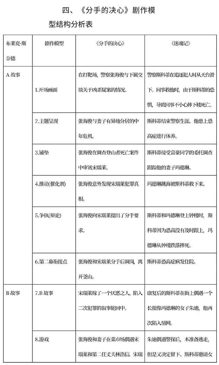 摘要:本文使用剧作家布莱克·斯奈德的剧作模型对《分手的决心》与《迷魂记》进行叙事对比研究,探讨两部影片叙事的异同与内涵,探寻《分手的决心》叙事创新观念,以期对电影叙事创作提供一定的思路与借鉴。