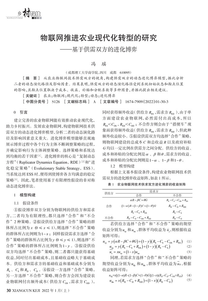 [关键词] 农业;物联网;现代化;转型;动态;进化博弈