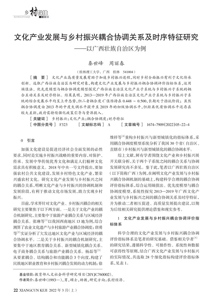 文化产业发展与乡村振兴耦合协调关系及时序特征研究