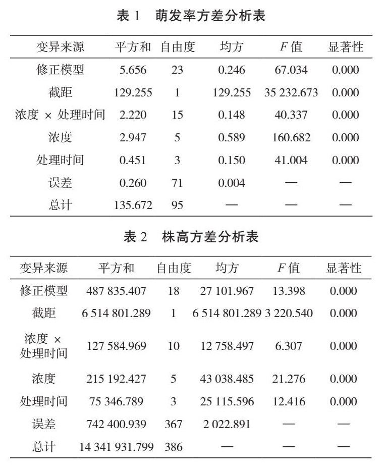 EMS处理对岷江蓝雪花种子萌发和幼苗生长的影响
