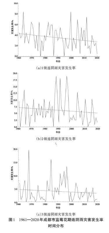 1961—2020年成都市蓝莓主要物候期连阴雨灾害时空分布特征