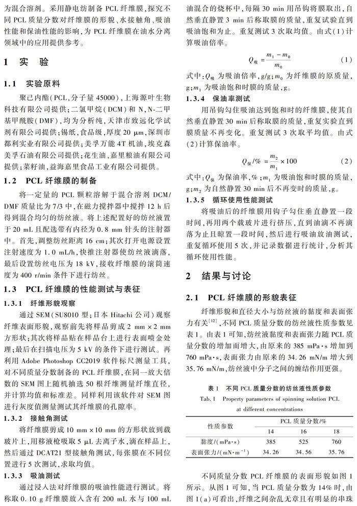 静电纺PCL纤维膜的制备及其性能