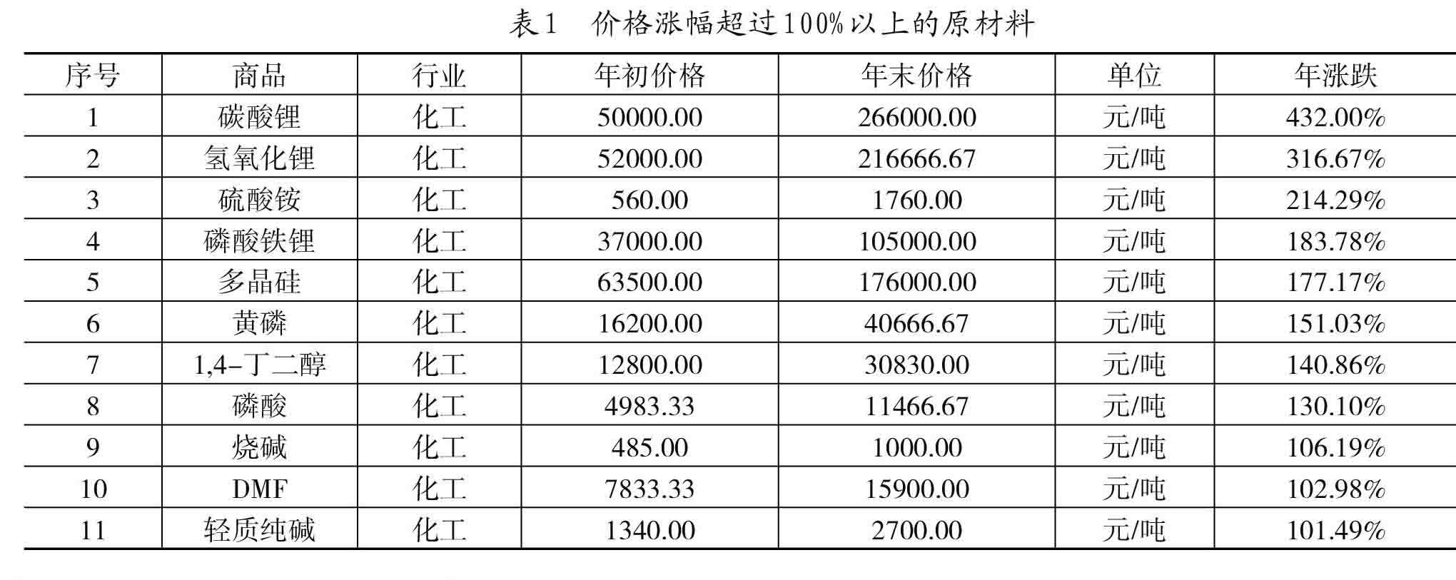 [摘要]2021年受货币宽松、供需不平衡等宏观因素影响,我国原材料价格涨幅明显,化工、有色金属、纺织原料上涨幅度最为突出,国内190种大宗原材料中有53种原材料上涨幅度超过50%,其中16种原材料上涨幅度达到甚至超过100%。研究表明:本次原材料价格上涨呈现出范围广、品种多、涨幅高的特征,同时对外依存度高的原材料和与新能源产业相关的原材料涨幅最为明显。(剩余11870字)
