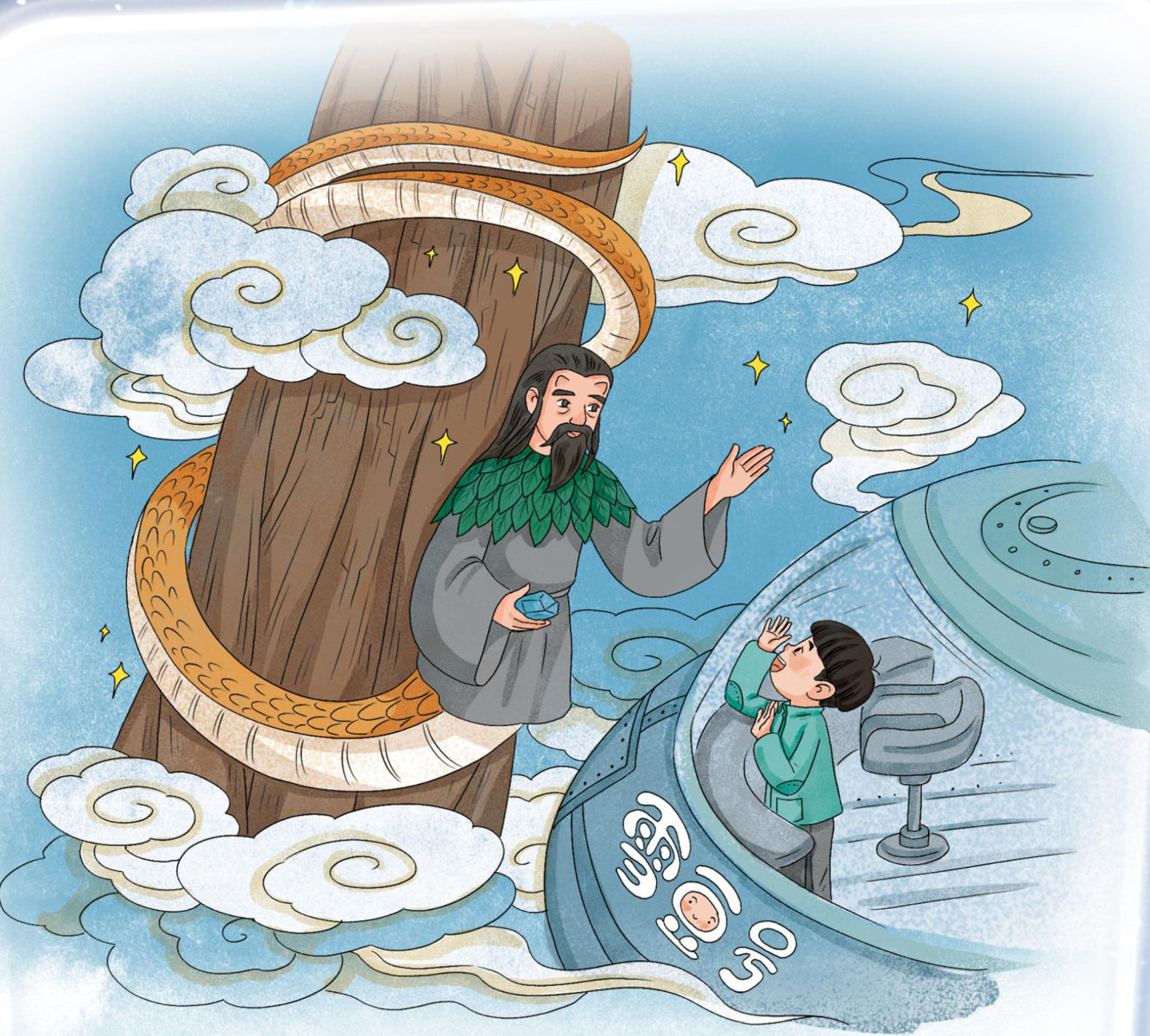 “是建木!"松子儿兴奋极了,连忙驾驶“雪豆号"向那里靠近……当看到建木上自己当年攀爬时留下的手印时,伏羲深吸了一口气说:“终于回来了!”