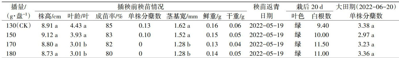 水稻密播短秧龄机插秧试验