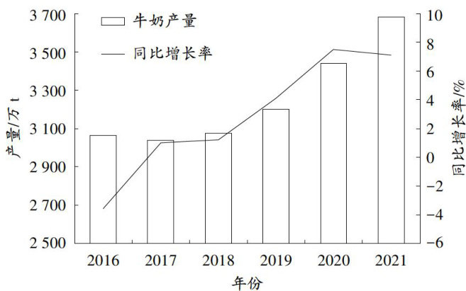 近几年,我国人民对奶制品的需求量大幅提高。根据中国奶业协会报道,2021年我国牛奶产量达到3683万t,乳制品产量超过3000万t。在大数据时代,制造业成为发展数字经济的主战场,从上游到终端的数字化全链条牛奶产业为每一瓶牛奶科技赋能。乳业发展得益于我国奶牛养殖业规模化、数字化、智能化水平的不断提高,2016一2021年我国牛奶产量增长迅猛(图1)。(剩余3824字)