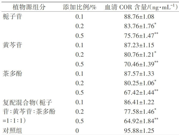 饲料添加植物源组分对大口黑鲈血清皮质醇含量与溶菌酶活力的影响