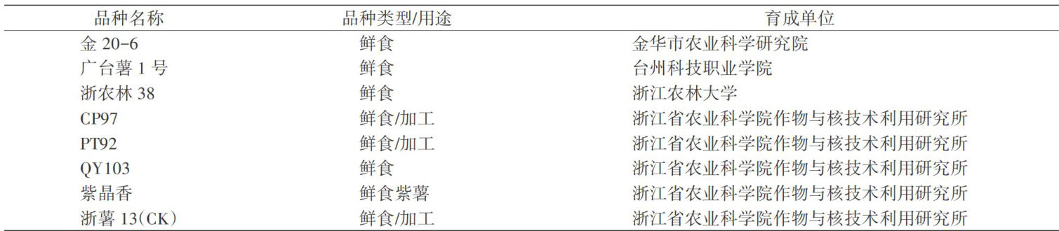 金华地区甘薯品种比较试验