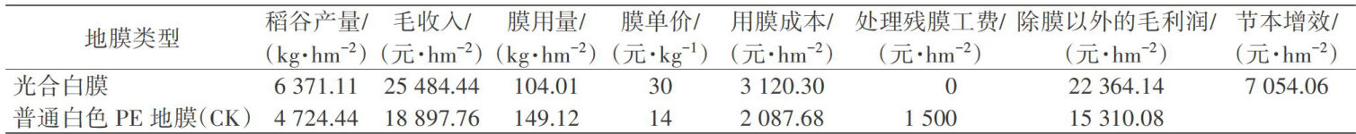 全生物降解膜在滇中冷凉稻区旱作水稻上的应用效果