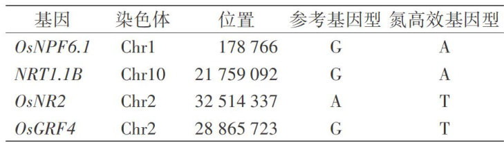 35份水稻骨干亲本氮高效基因分析及功能分子标记开发