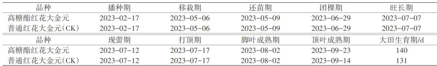 烤烟新品种高糖酯红花大金元生产示范比较试验