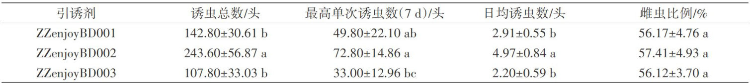 不同引诱剂对柑橘小实蝇雌雄成虫的引诱效果