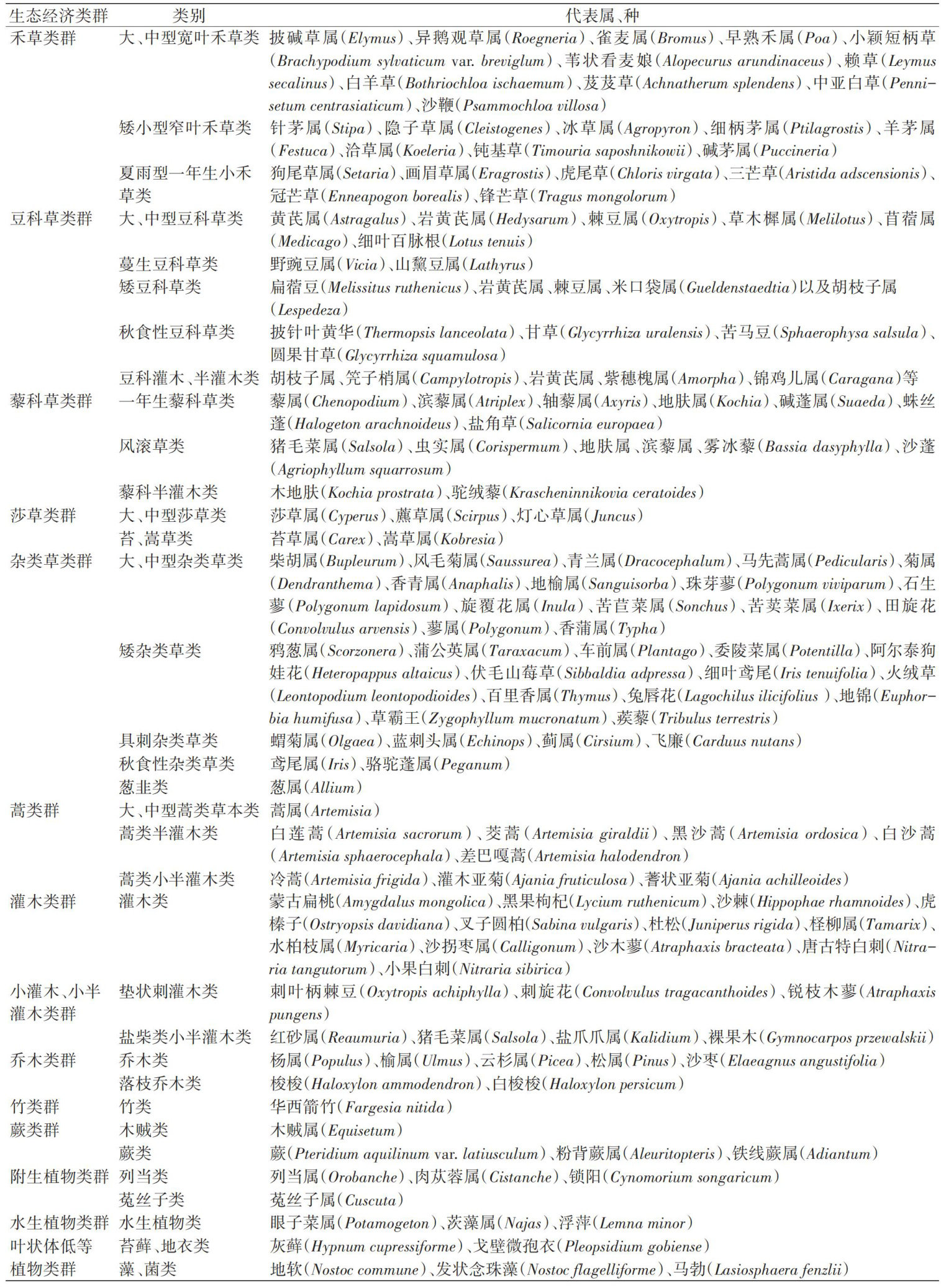 宁夏天然草原野生植物资源分类