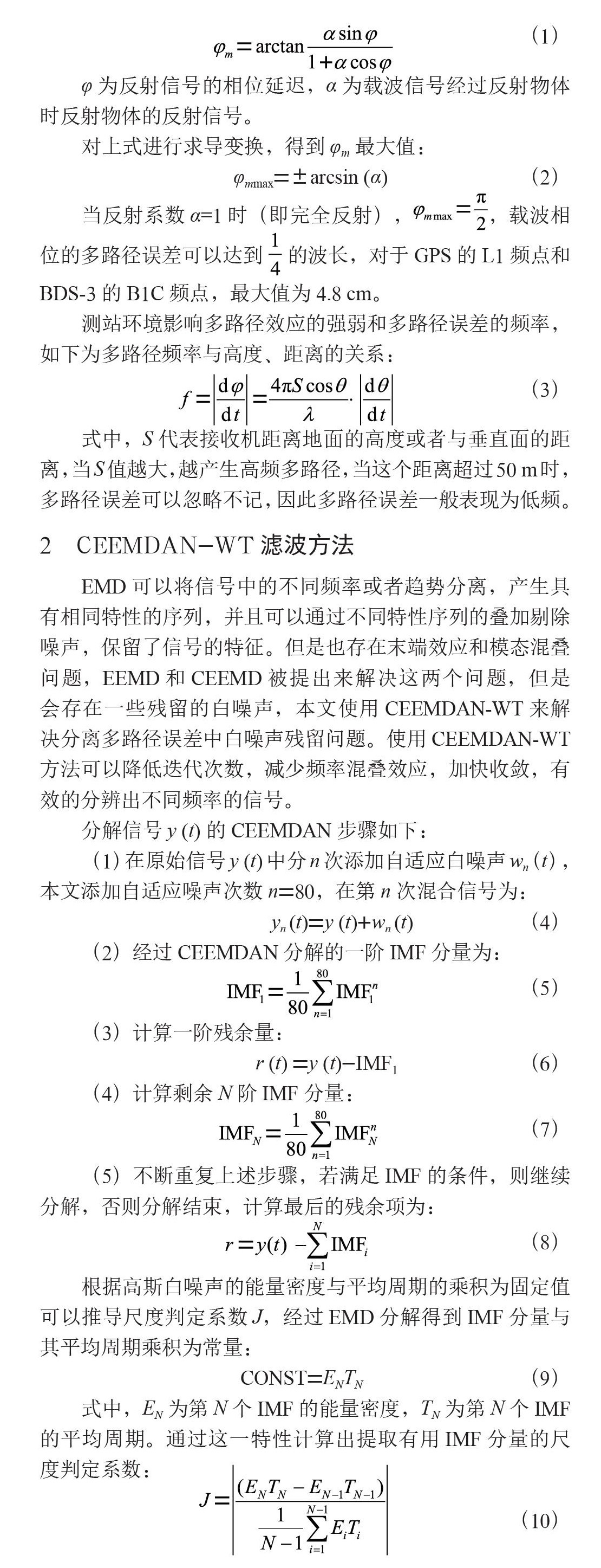 基于完全自适应噪声集合经验模态分解与小波变换相结合的GPS/BDS-3多路径误差削弱研究