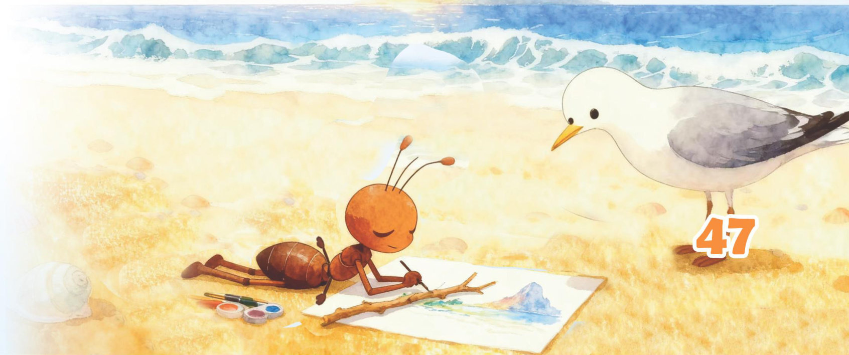 小蚂蚁看见海边有一只纸船,赶紧爬了上去。可没过一会儿,纸船就被海水浸得发软。就在这时,一只海獭游了过来,轻轻把纸船捞到了身前。小蚂蚁吓得浑身发抖,大叫起来:“完蛋了!我要被海獭吃掉了!”