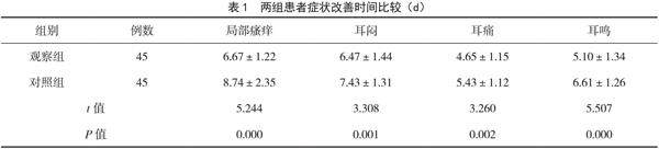 【摘要】 目的 探讨臭氧耳内治疗联合红光照射结合循证护理对外耳道炎患者症状改善、听力恢复、安全性及护理满意度的影响。方法 选取2021年1月- 2024年12月西宁市第一人民医院收治的90例外耳道炎患者,根据组间基线资料均衡可比的原则,采用随机数字表法分为对照组和观察组,各45例。(剩余6373字)