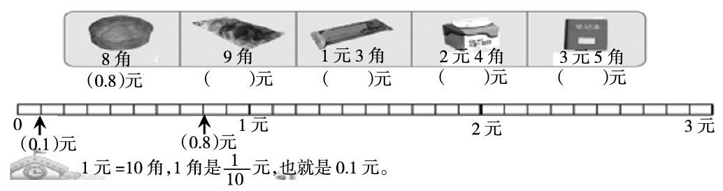 “数的认识”这一领域主要指向的核心素养是数学抽象思维,而小学生主要以具体形象思维为主,那么如何借“形”让学生经历逐步抽象出“数”的过程就至关重要。接下来我以苏教版教材三年级下册《小数的初步认识》为例,谈谈自己的一些思考。