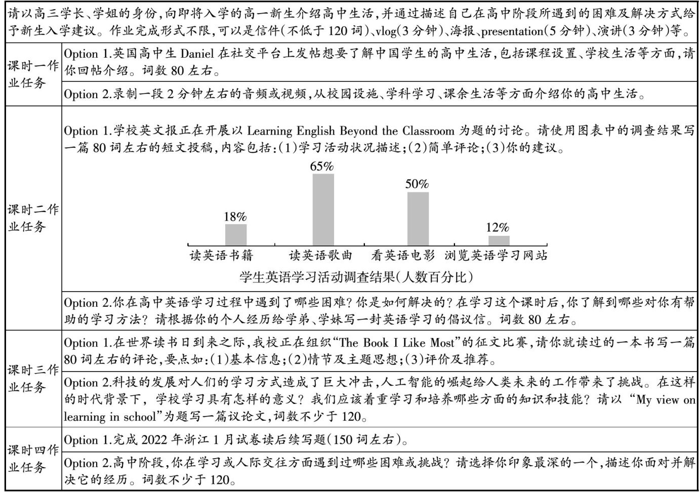 作业设计作为课堂教学向自主学习过渡的环节,对学生进行深度学习有着直接影响。高三英语大单元作业基于深度学习理念,整合课内外资源,使学生主动构建知识与思维支架,解决真实问题,助力深度学习的完成。