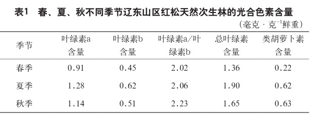 辽东山区红松天然次生林的光合色素含量及光合生产能力