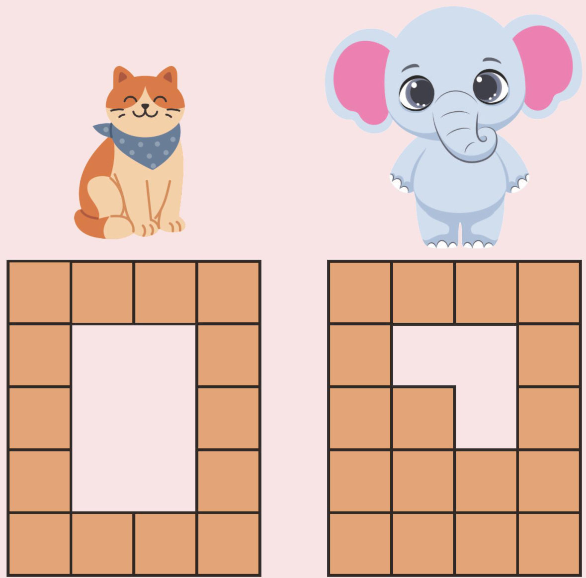 4只动物分别用正方形地砖拼成了一个图形,数一数、比一比,谁用的地砖块数最多?