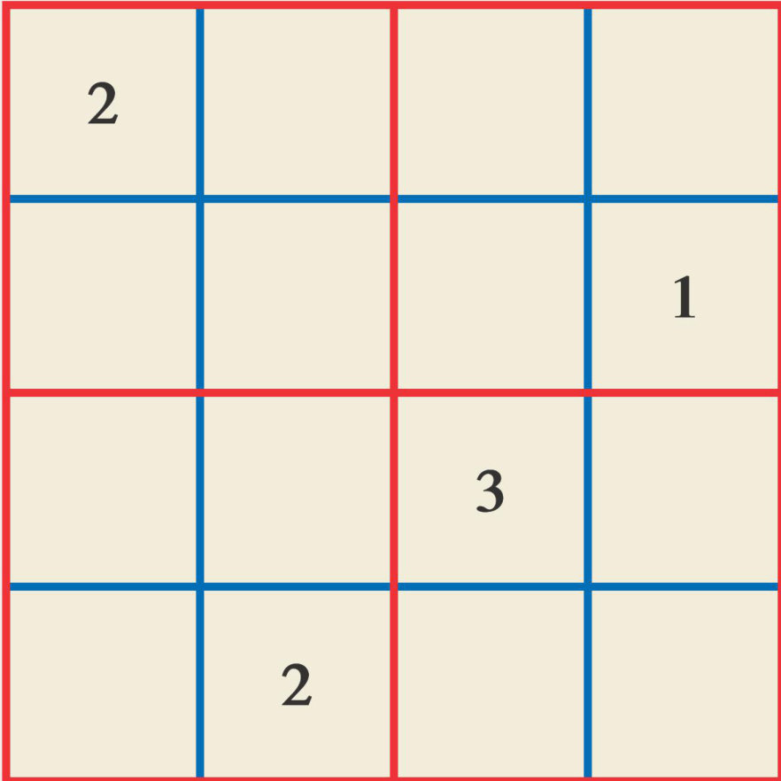在下面的方格内填入 1~4 ,使得每个数在每一行、每一列、每个红色小正方形内都不重复。(剩余469字)