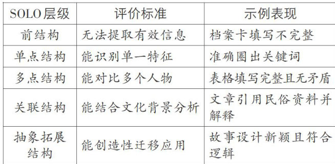 小学语文“三力”课堂贯穿始终的是“问题中心”的课程教学思想,是教师从文本的“根”中寻求“三力”张扬的碰撞点。然而,在传统阅读教学模式下,教学与评价常存在脱节问题,难以精准提升学生的阅读能力与思维品质。因此,在SOLO分类理论指导下进行小学语文整本书阅读测评,需要依靠科学、统一的标准。这样既能提升阅读评价的可靠性与有效性,又能助力学生实现高质量阅读及思维能力的发展。(剩余4116字)
