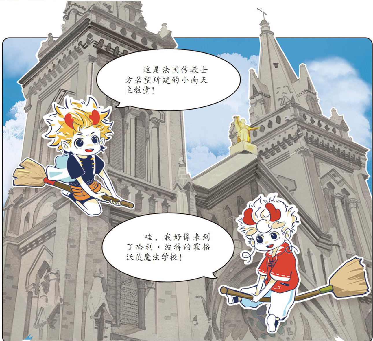 小南天主教堂是一座典型的哥特式建筑。哥特式建筑的特点是高耸、尖峭、细长,给人一种向上的感觉。教堂正面的顶部有两个突出的方锥形尖顶。走进教堂内部,你会被宏伟的空间所震撼。高耸的拱顶、细长的柱子、色彩斑斓的玻璃窗,传递出哥特式建筑的独特魅力,人们仿佛进入了童话般的世界。
