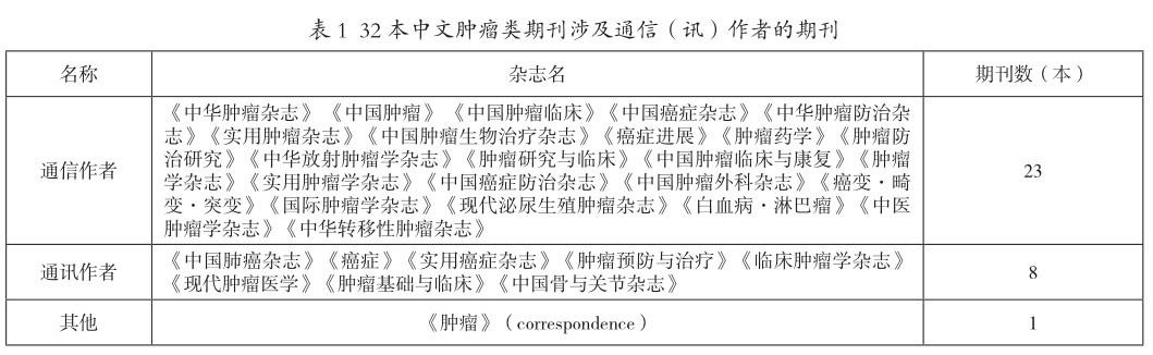 中文肿瘤类期刊通信作者署名现状分析及思考
