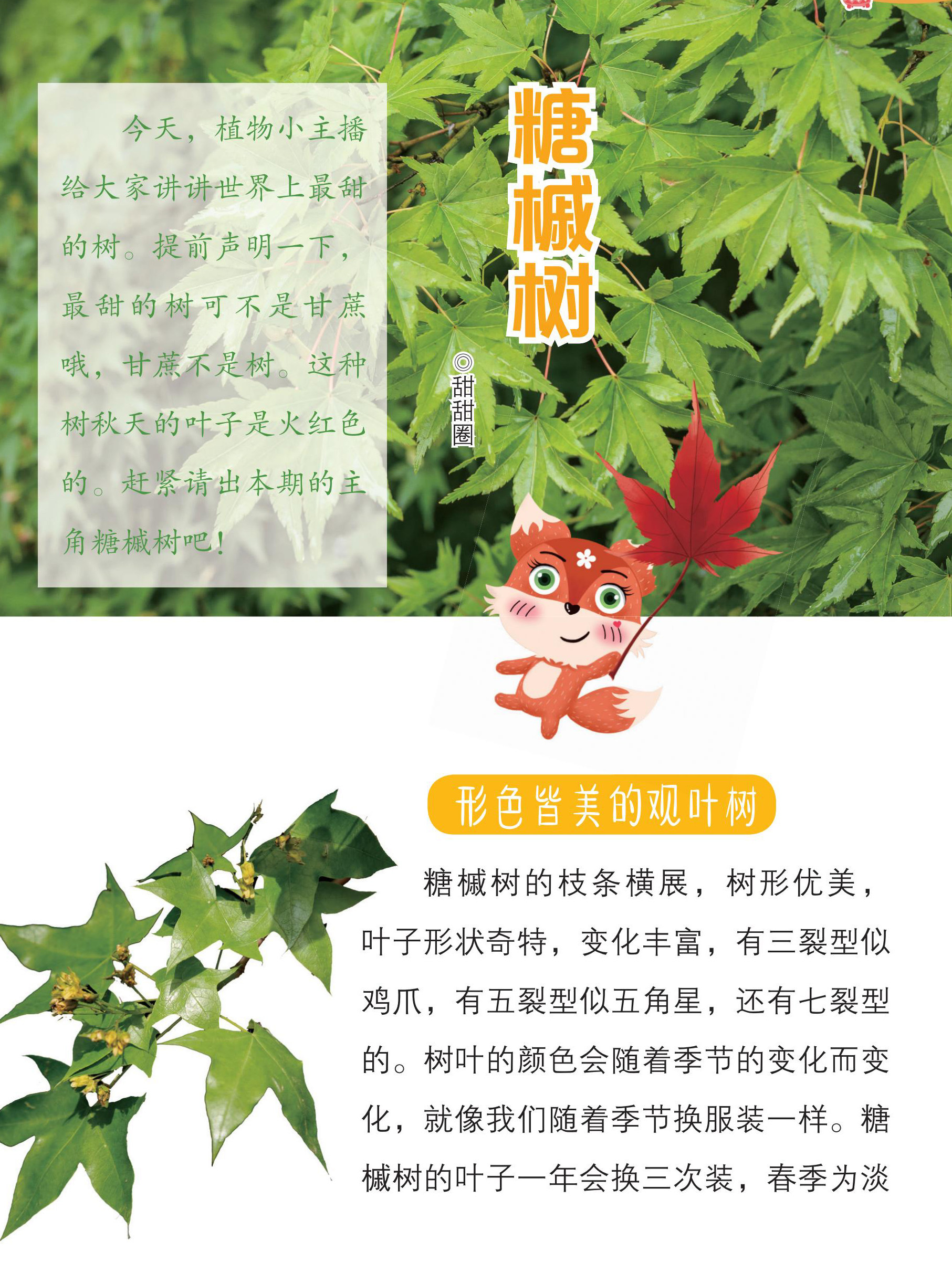 今天,植物小主播给大家讲讲世界上最甜的树。提前声明一下,最甜的树可不是甘蔗哦,甘蔗不是树。这种树秋天的叶子是火红色的。赶紧请出本期的主角糖槭树吧!