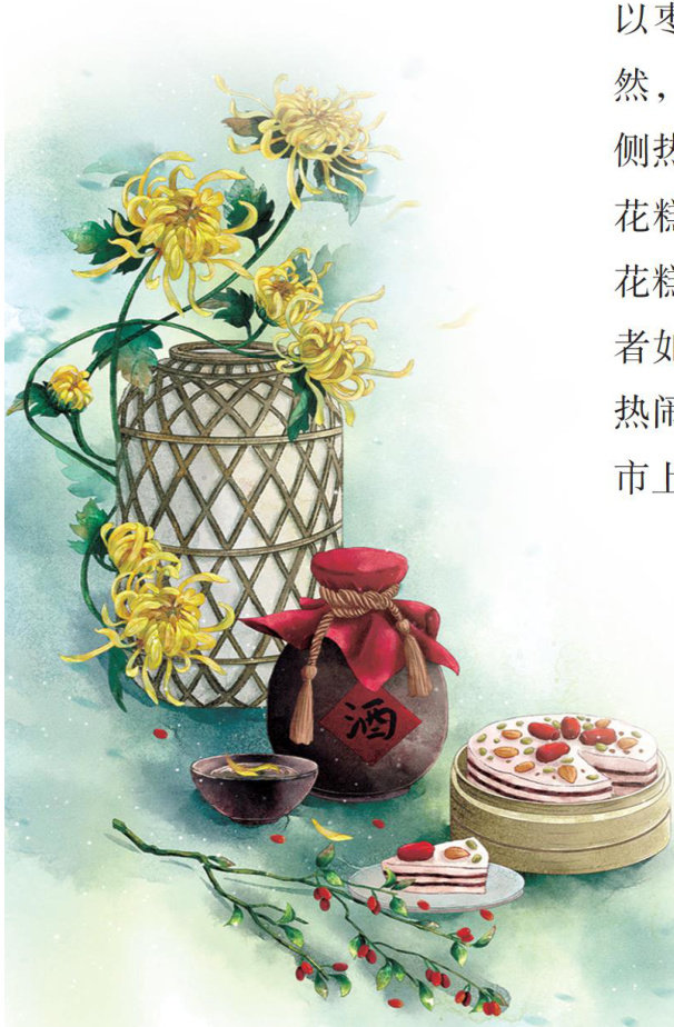 重阳节,老北京人以前讲究要登高的,城北要登天宁寺,城南要登法藏寺,登高的同时,还讲究要喝菊花酒、插茱萸、吃花糕。单说这花糕,已经很有些年头未见了。去年重阳节前,到稻香村买点心,忽然看见了重阳花糕,颇有点儿意外,甚至惊奇,跟阔别重逢一般。上下两层,里面夹着枣泥、山楂、核桃仁和果脯,上印“重阳花糕”方章,红红的,很喜庆。(剩余1042字)