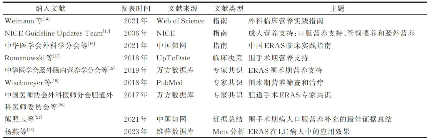 AbstractObjective:Toretrieve,evaluate,andsynthesizethe bestavailableevidenceonearlyoral fedingafterlaparoscopic cholecystectomy,soastohancehealtcareprofessionalsawarenesandprovidebasisforclinicalcaredecisions.Metos:Relevant literatureonearlyoralfeedingafterlaparoscopiccholecystectomywasretrievedfromguidelinewebsitesanddatabasesincluding UpToDate,BMJBestPractice,NICE,SIGN,Cochrane Library,PubMed,CNKI,WanFang Data,VIP,CBM,WebofScience,and ShanghaiEvidence-BasedNursingResourceDatabase.ThesearchperiodspannedfromJanuary1,2O16,toDecember3l224.Two researcherindependentlysedadaeedteuaityofteliteratureextractigevdencefoeligiblestuesesults:Aotalof9 articles werecuded:3gudelies,icaldecisioidxprtonsessdocuments,evidencesummaryandetalyis.A totalof1lbestevidencestatementseresythesedacross5omais:iingandtypsofearlyoalfedig,ontraidicatioslcal strategies,fetydlicalitsdtoleraceuraendessmtocuiEtigseahideefiety andefcacyofalyoralfedingafterlaparosopicholecystectomyHealthcareprovidersareadvisedtoeferencetebestevidecefrom this study to standardize postoperative feeding management and promote the rapid recovery of patients.