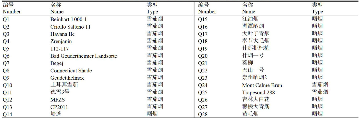 TAN Yating, QI Chaofan1,2, DU Yongmei1, ZHANG Hongbo1, YANG Ying1, HAN Xiaol,FU Qiujuan1, OUYANG Yiming1,²,LIU Keqiang³*,LIU Yanhual* (1.Tobacco Research Institute,Chinese AcademyofAgricultural Sciences,Qingdao,Chia; 2.Graduate Schoolof Chinese AcademyofAgculturalSiences,Beijing1Cina;3.HeilongjiangbaccoIdustryCo,td.,Harbinina)