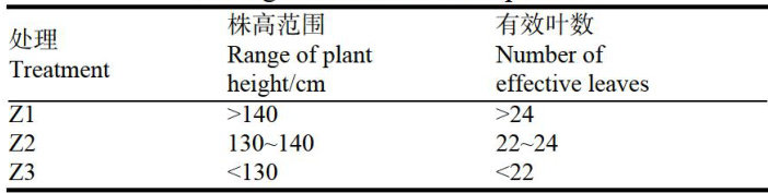 Abstract: To explore the planttypecharacteristics ofthenew flue-cured tobacco variety Zongchuan 208 asa moderate plantshapes tobaccoin Shandong tobacco-growingareas,theagronomicandeconomictraits,aswellasthequalitydiferencesofmiddleand uppeleavesaftercuring,wereinvestigatedinthrediferent growth types (Z1,Z2,Z3)ofZhongcuan28.Theclassfcationcitea for the three growth types were specified as follows. Z1:plant height >140cm ,effective leaf number >24 ; Z2:plant height 130- 140cm ,effective leaf number 22-24; Z3: plant height <130cm ,effective leaf number <22 .The results showed that there were no significantdifferencesintheproportionofhggradetobacoandaveragepricebetweenZ2andZ3,butbothwerehigher hanthose of Z1.The total scores for appearance quality evaluation of middle and upper cured leaves of Z3 were 12.63% and 4.30% higher than thoseof Z1, respectively,also 3.88% and 2.11% higher than those of Z2,respectively. The coordination of the conventional chemical componentsofthemiddleandupperleaveswasoptimalinZ3,mainlyreflectedinthehighercontentsoftotalsugarandreducing sugar inZ3,withthehighestsugar/nicotieratiowithin teapproprateranges.Thetotalscoreofsensoryqualityofmiddleandupper leaves of Z3 was the highest, which was 5.14% and 11.41% higher than that of the lowest treatment, respectively. The comprehensive evaluationof tobaccoleavesfromthethree treatmentsindicatedthatthecomprehensivequalityofZ3wasthebest.Therefore,the suitableplanttypecharacteristicsof Zhongchuan2O8asamoderateplantshapes tobaccoinShandong tobacco-growingareasare represented by Z3, with the specific agronomic indexes follows: plant height (123.24±1.78) )cm, effective leaf number (20.76±0.82) stem girth (8.92±0.48) cm,middleleaf length (69.97±1.26) cm, middle leaf width (30.14±1.43) )cm, upper second shed leaf length (204号 (44.92±2.00) cm, and upper second shed leaf width (20.28±0.98) cm.