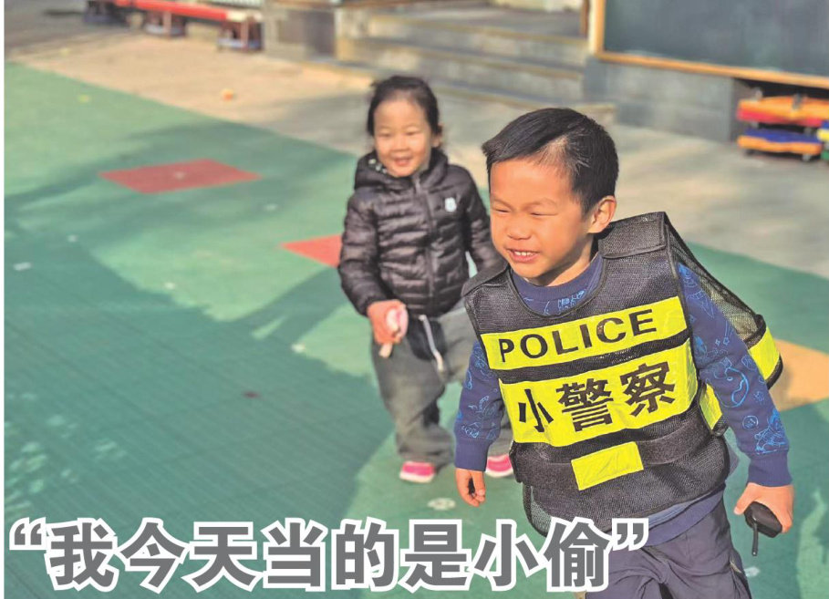 十月,秋高气爽,正是孩子们开展户外游戏的好时节。操场上,中班孩子们各自忙碌着,有的在用梯子、鞍马设计跑酷游戏,有的在搭建梯子挑战区,还有一组自称小警察的孩子正用锥桶认真围出一个检查站。