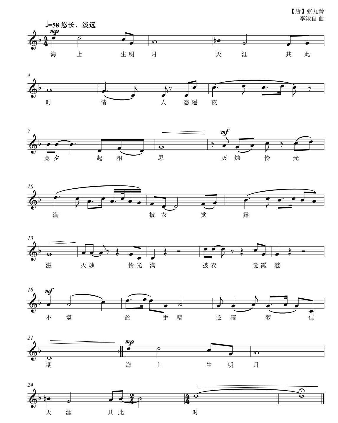《望月怀远》曲谱