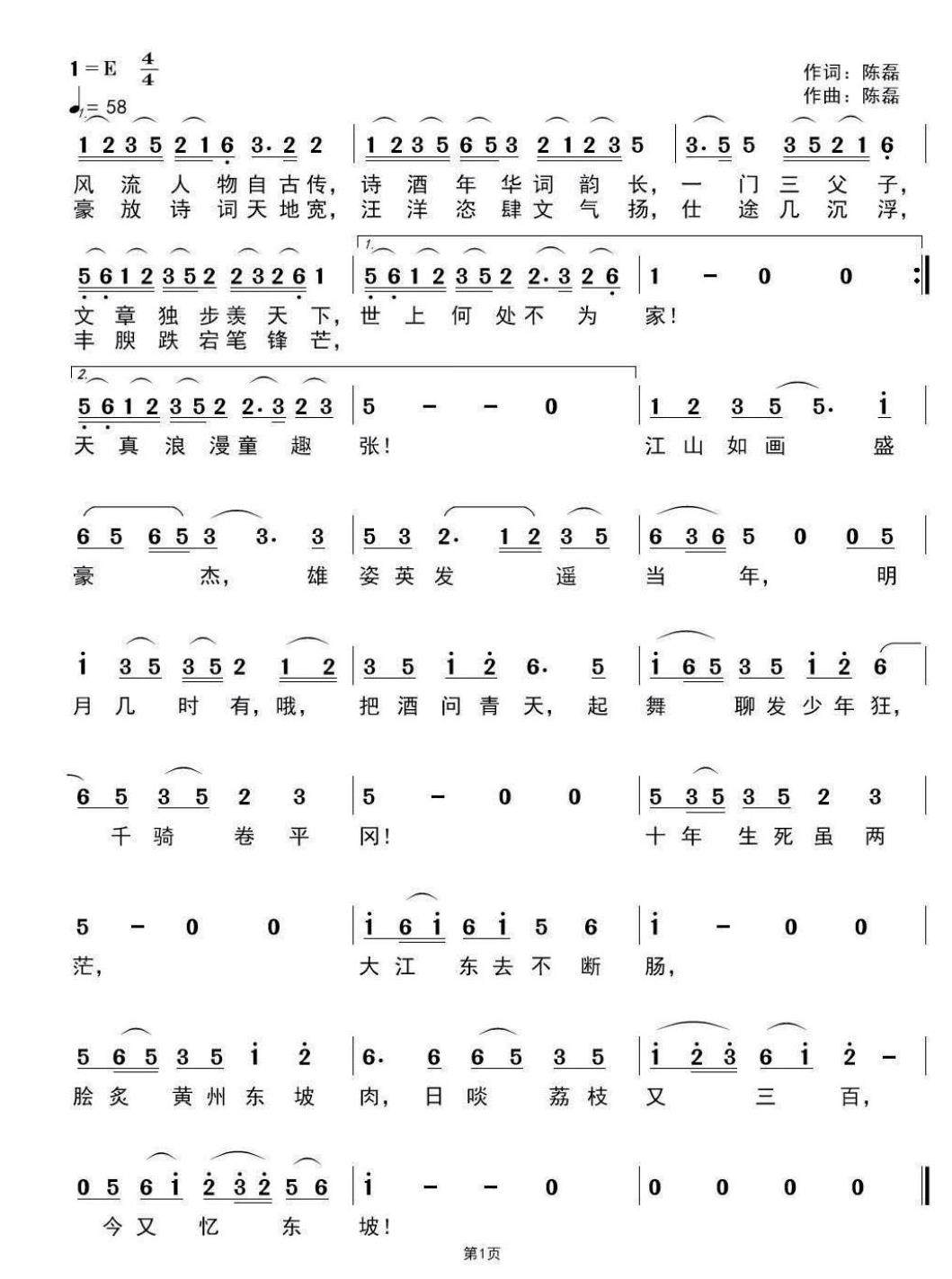 《忆东坡》曲谱