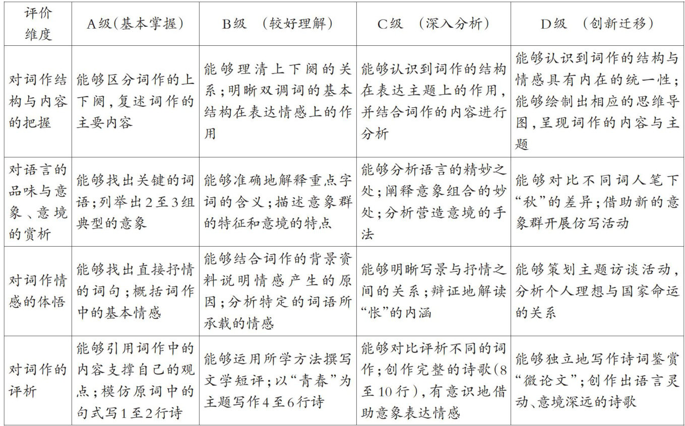 逆向设计(UnderstandingbyDesign)始见于美国教育家格兰特·威金斯、杰伊·麦克泰格同著的《追求理解的教学设计》。“逆向设计”就是指教师在设计教学方案时先预想学生学习的结果,以此来确定教学的目标和内容的一种设计理念。《普通高中语文课程标准(2017年版2020年修订)》(以下简称“课标”)将词作阅读置于“文学阅读与写作”“中华传统文化经典研习”等学习任务群中,强调教师要“以任务为导向,以项目为载体,引导学生在运用语言文字的过程中培养语文核心素养”。(剩余1879字)