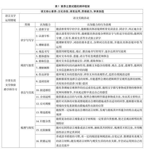 【摘要】小学语文命题要以语文核心素养为考查目标,可将学业质量标准转化为测评框架,明晰语文核心素养评价应涉及的内容,以及须关注学生的哪些认知能力。依据测评框架,研究设计以情境为载体的典型任务,整合识字与写字、阅读与鉴赏、表达与交流、梳理与探究等语文实践活动,考查学生核心素养的典型表现,并使情境化试题与教材内容保持显性或隐性的关联,体现“教—学—评”的一体化。(剩余7542字)